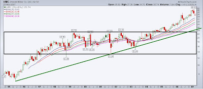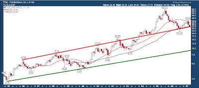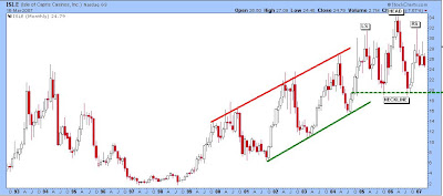 HUGE MOVE UP FOR THIS ONE -- TURNED AROUND AT 72 AND HAS DECLINED WITH THE RECENT DOWN MOVE -- SEEMS TO BE FORMING A HEAD AND SHOULDERS TOP SHOULD HAVE SOME ROOM TO DECLINE FURTHER AFTER IT REBOUNDS A BIT HERE